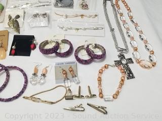 Lot Details: Tray NOT included. Earrings, necklaces, bracelets, tie clips, etc. Refer to photos for lot contents.