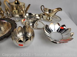 Lot #0279: Assorted Silver Plate Table Ware & Decor
