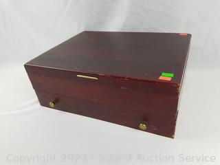 Lot Details: Chest is missing a hinge, some wear to the finish. 6" x 15" x 11".