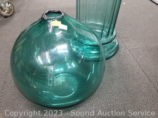 Lot #0203: Green Glass Globe w/Glass Pedestal