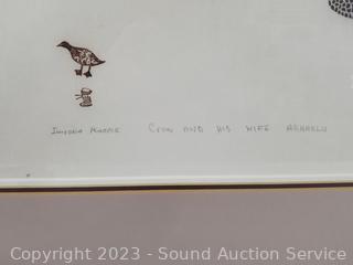 Lot Details: Pencil signed by artist. Titled "Crow & His Wife Agnaklu". Limited #34/48. 30" x 38". Framed, matted with glass. Can be quite valuable.