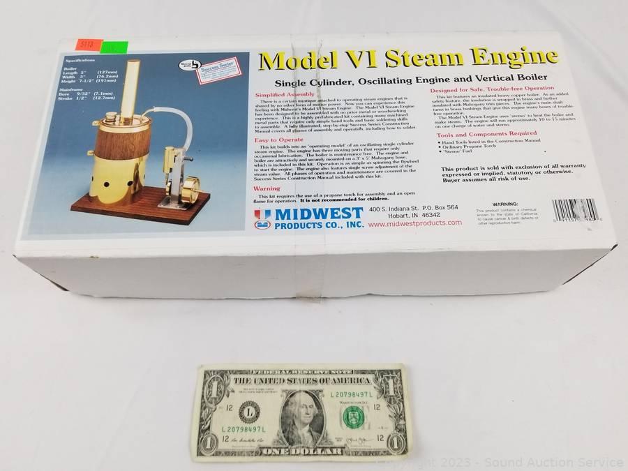 Lot Details: Single cylinder, oscillating engine and vertical boiler. Appears complete in original packaging. Refer to photos for more information.