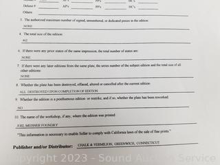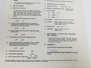 Lot Details: Publisher c.1990 Chalk & Vermillion and Sevenarts. Appears to be the real deal, comes with purchase receipt from Martin Lawrence Gallery, purchased for $10,500. Comes with Certificate of Tirage & Art documentation. 20" tall, 10" wide arms. Marble base, bronze sculpture.