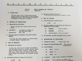 Lot #0001r: Original Erte' Bronze Deco Sculpture "Monaco" w/CoA