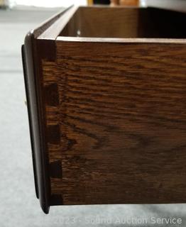 Lot Details: Removable silvercloth lining. In excellent condition. See a few minor scuffs. Solid wood construction, dovetail joinery. 43.5" H x 22.25" W x 13.5" D.