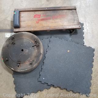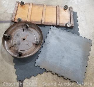 Lot #0096: 4pc Floor Tiles, Creeper & Roller Cart