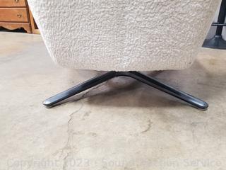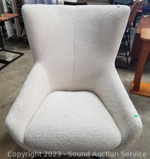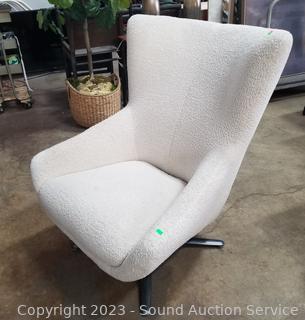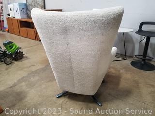 Lot #0039: Ivory Poodle Plush Wing Back Swivel Easy Chair