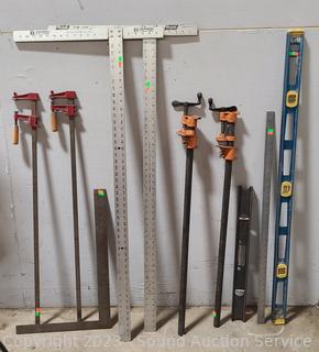 Lot #0284: Levels, Drywall Squares, Bar Clamps