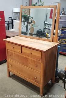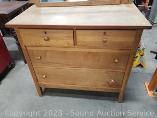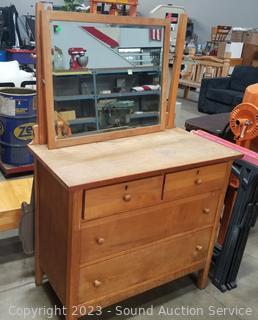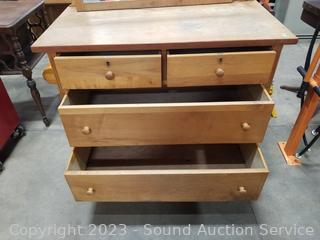 Lot #0023: Natural Wood Finish 4-Drawer Vanity Dresser