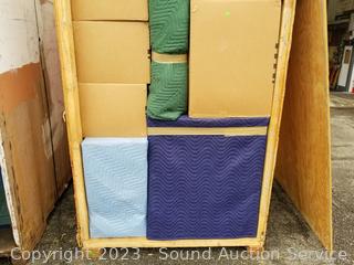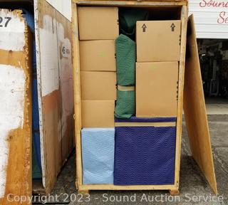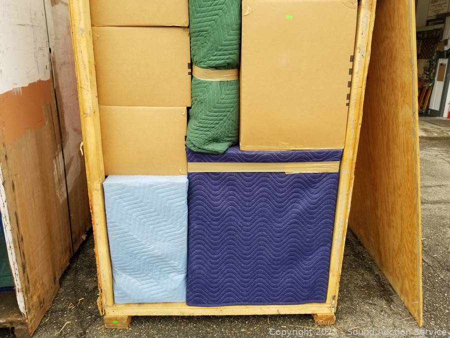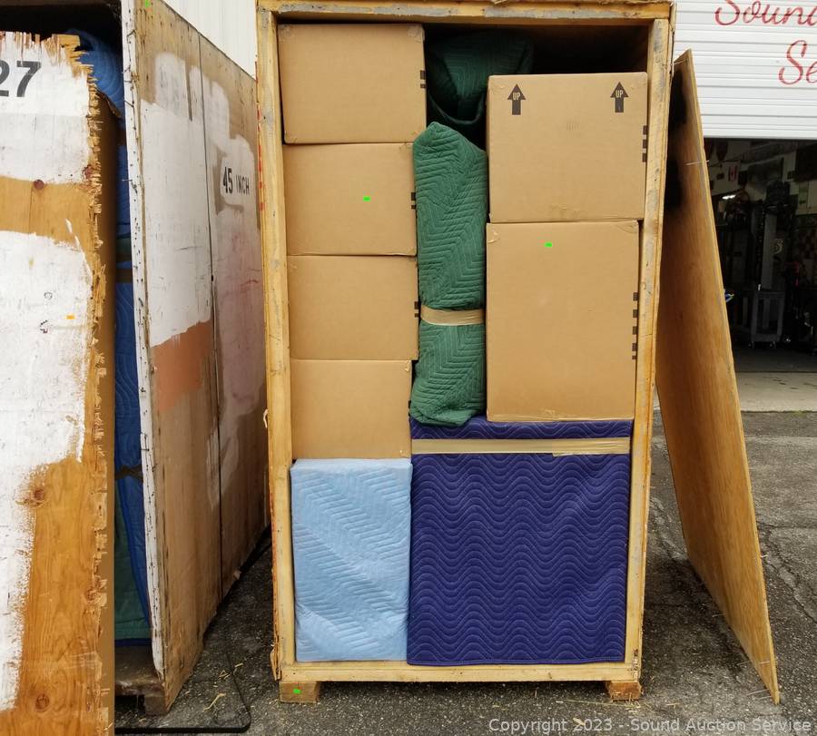 Lot Details: Approx. 87" x 45" x 87" (size may very slightly). Refer to photos for vault contents, what you see in the photos is what we see, we have not gone through vaults. Preview online only, contents of vaults may not be gone through. Vaults themselves & blankets not included. As is, no refunds.