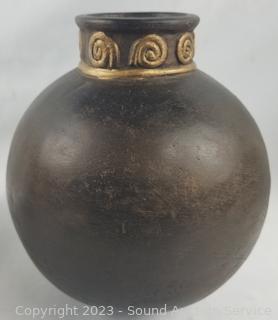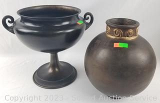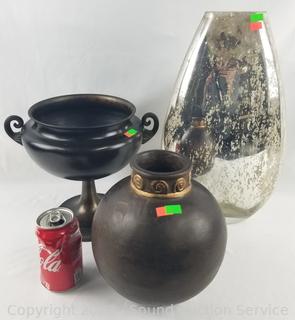 Lot #0093: 2 Pottery & Acrylic Vases & Metal Planter/Compote
