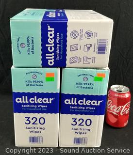 Lot #0027u: (3) 320ct All Clear Sanitizing Household Wipes