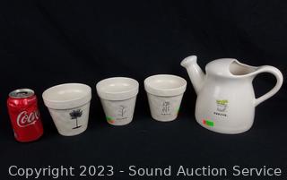 Lot #0120: 3 Ceramic Planter Pots w/Watering Can