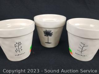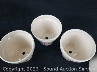 Lot Details: Pots marked "Merry", "Joy", "Cheer". Don't see any issues. 4-1/8" x 4.5" Dia pots.