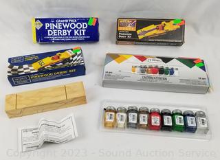 Lot #0139: 3 Pinewood Derby Car Kits & Enamel Paint Set