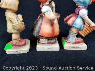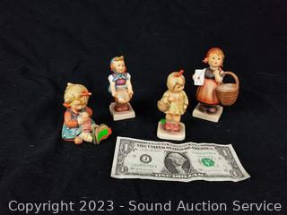 Lot Details: TMK-3 #73 "Little Helper", TMK-5 "Meditation", #479 Hummel Club, #432 "Knit One, Purl One". 3.25" to 4.5" tall.