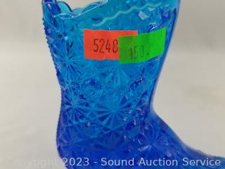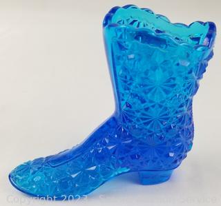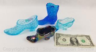 Lot #0150: 4 Blue/Indiana Glass Boot/Shoe Decor