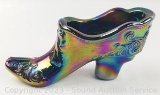 Lot Details: Approx. 2.25" H x 4.5" to 5.5" L x 1.5". Tallest is Fenton, One marked S.D.Sollers & Co. Fine Shoes, one unmarked, Indian glass like one marked Mosser Glass. Don't see any issues.