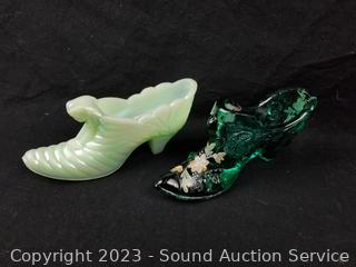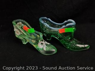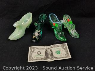 Lot #0149: 4 Fenton Green Glass Boot/Shoe Decor