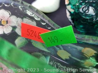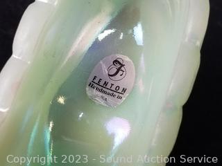 Lot Details: Approx. 2.75" H x 6" x 1.5". 2 are hand painted, signed on bottom. All embossed with Fenton mark. Don't see any issues.