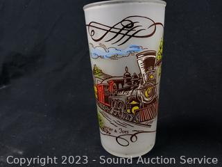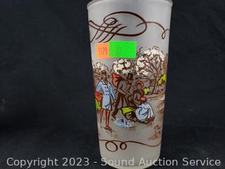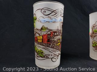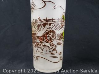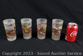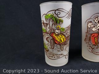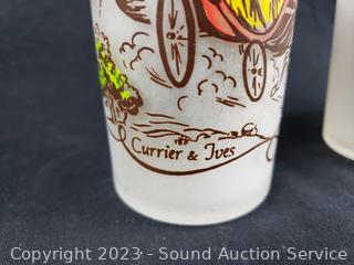 Lot #0037: 4pc Currier & Ives Frosted Glass Tumblers