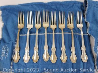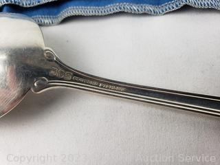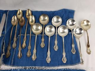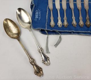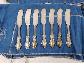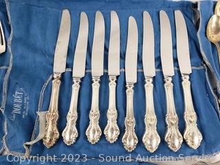 Lot Details: 8 knives, 7 spreaders, 8 salad forks, 14 spoons, 8 soup spoons, 5 tea stirrers, 2 serving spoons, 8 dinner forks. TW:68oz without knives.