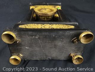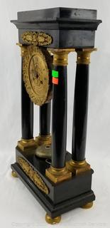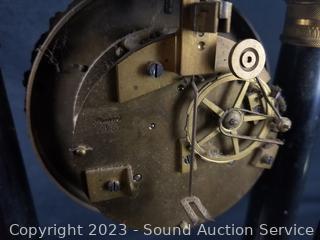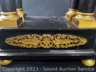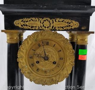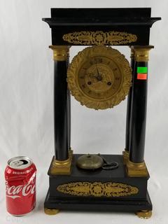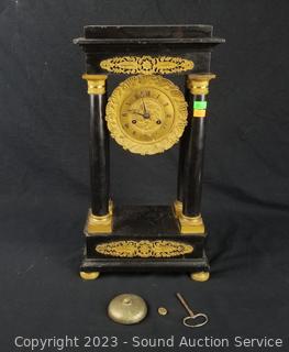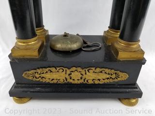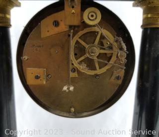 Lot Details: Parts/Repair, not functioning, looks like missing pendulum, some of the pillars look out of place, chip on top portion of the stone. Comes with key.