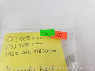 Lot Details: (2) 90% Silver 1964, (5) 40% Silver 1965, 1966, 1968, (2) 1970. ATTN: We are not coin or currency experts or graders, please use your own judgement when bidding.
