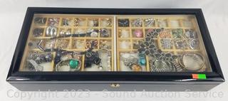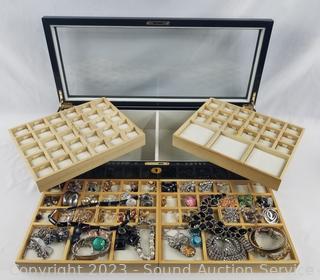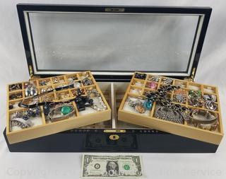 Lot #0092: Beautiful Locking Jewelry Chest w/Jewelry