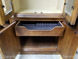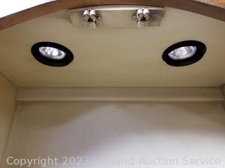 328 Lots Including; Antique 1910 Singer Treadle Sewing Machine, 60pc Concord Sterling Silverware Set, Antique Oak Secretary Desk, Ivory Leather Power Reclining Love Seat, Vintage Oak Mirrored, Claw Foot Curio Cabinet, Vintage Hummel Figures, Sterling Bowls, Gold Jewelry, Pfaff No.139 Commercial Sewing Machine, Radial Arm Saw, Trolling & Outboard Motors, Vtg. Fenton/Art Glass & Other Glassware, Dressers, Dining Set, Lapis Gemstone Brass Globe, Coca-Cola Glassware, Antique Leather Photo Album w/Photo's, Railroad Signal Lantern, Men's & Women's Footwear, Table Lamps, General Household, Collectibles, China & Much More!!!