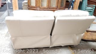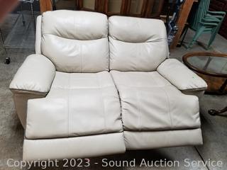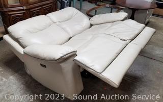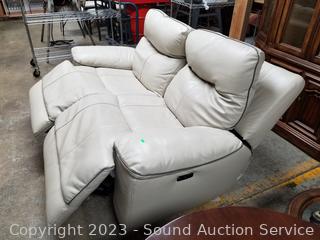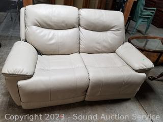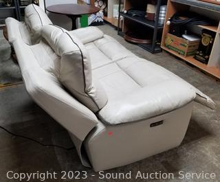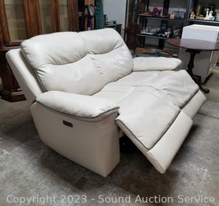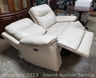 Lot #0003u: Ivory Leather Power Reclining Love Seat