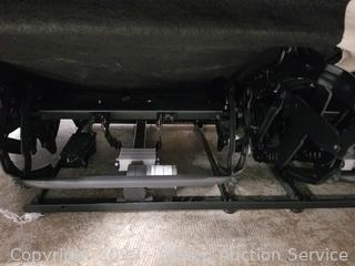 Lot Details: Works. Has some scuffs, back right side has bad seam, right leg support missing piece of wood on underside. 37" H x 69" W x 19" to seat.