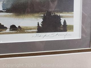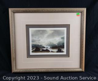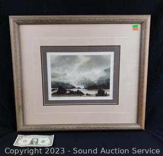 Lot Details: Unable to make out signature, refer to photos. Limited #510/750. Framed, matted with glass. 19" x 22".