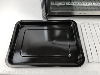 Lot Details: Comes with baking pan & 2 racks. 11.5" H x 19.7" L x 14.6" W. Comes in original packaging.