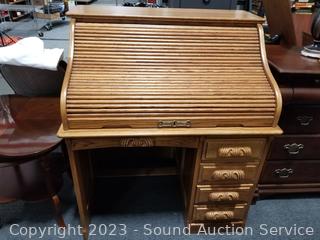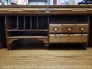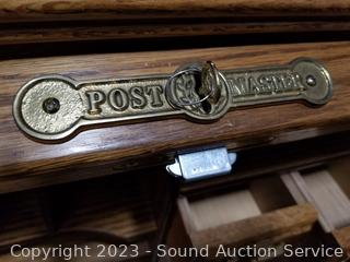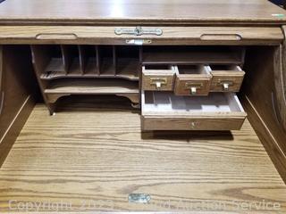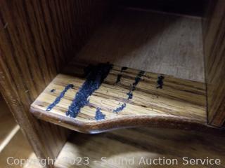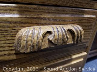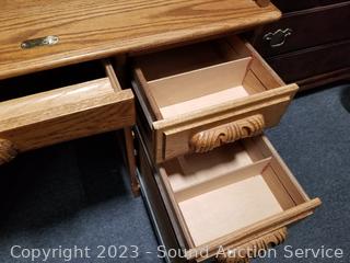 Lot Details: Locking w/key. Top drawer is velvet lined. Appears to be solid wood construction. 45" H x 39" W x 29" D. Overall in great condition.