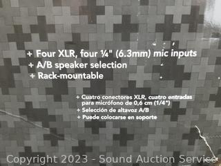 Lot Details: Has power. Comes with manual, original packaging. In excellent condition. Four XLR 1/4" mic inputs, A/B speaker selection, rack mountable.