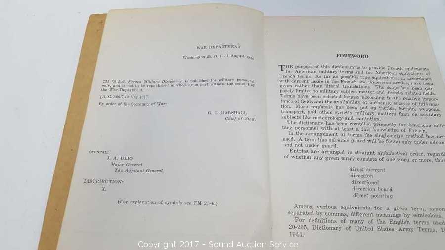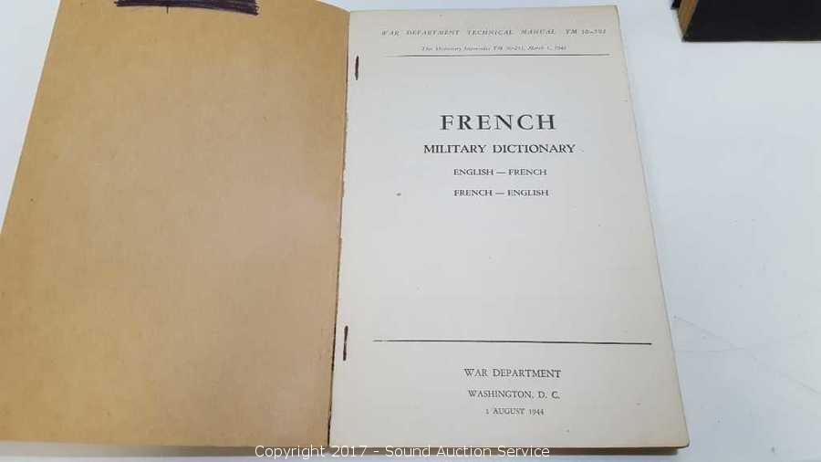 Includes 1924 Webster's handy-service dictionary, and 1944 TM 30-502 War Department Technical Manual French military dictionary.