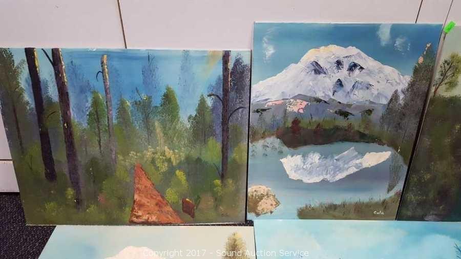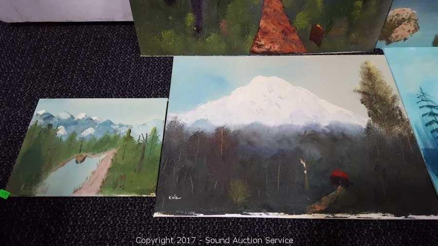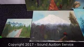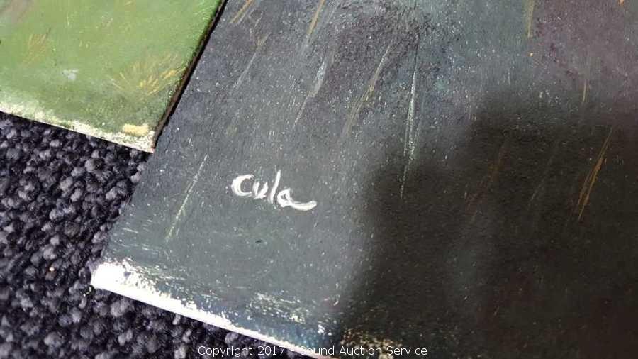 On canvas & Canvas board, artist signed Cula, dated 1980, all mountain and forest scenery. 14"x18" & 8"x10"