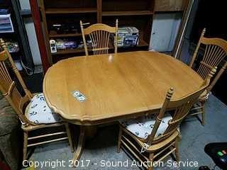 Lot #0217: A America Solid Oak Dining Table w/4 Chairs