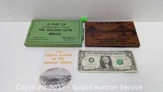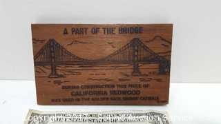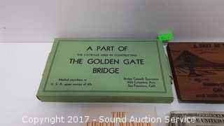 Was part of the catwalk used in the construction of the Golden Gate Bridge. Comes in original box & Pamphlet., Box does have a small tear but in overall very good condition.