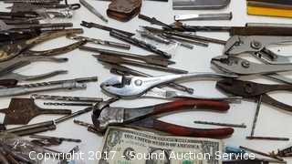 Lot #0071: Misc Drill Bits Pliers Hardware & More