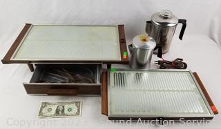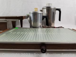 Lot #0076: 2 Coffee Percolators & 2 Elec. Warming Plates