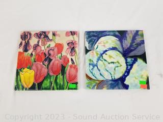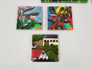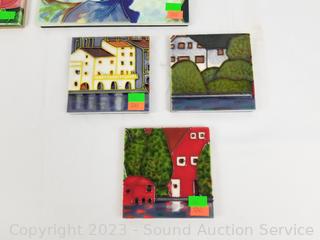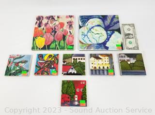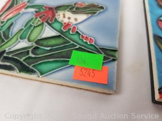 Lot #0104: 8pc Hand Painted 4" & 8" Tile Decor