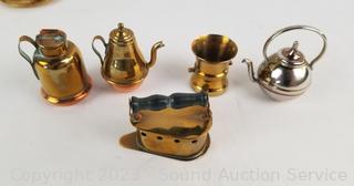 Lot Details: Miniature anvil, spittoon, trivet, sconces, cordials, other dishes & more. Refer to photos for lot contents.