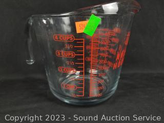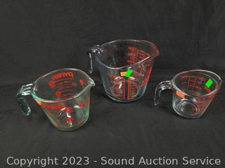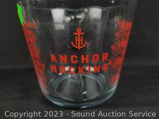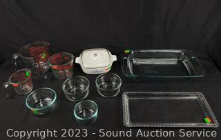 Lot Details: Pyrex, Anchor Hocking, Corning, Candlewick. Measuring cups, bowls, baking pan/sheet, etc.