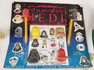 Lot Details: Also comes with Star Wars Return of the Jedi Pencil Topper set, factory sealed, some damage to packaging. Lesney, Matchbox, Dinky Toys, Corgi Toys diecast cars, Star Trek toy gun, Green Hornet Thermos.