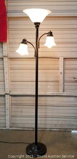 Lot #0239: Black 3-Light Frosted Glass Shade Floor Lamp