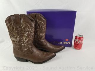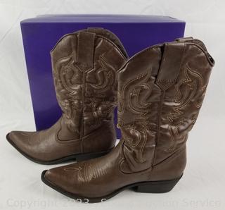 Lot #0184: Madden Girl Sanguine Brown Cowgirl Boots S:8.5