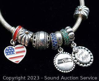 Lot Details: Tested 2 charms & bracelet, all tested silver. Did not see a sterling mark. unsure if all parts are silver. TW:38.3.