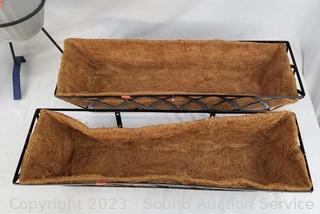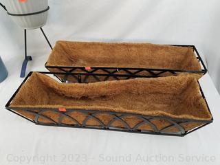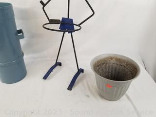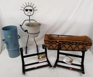 Lot #0231: Planter Basket Troughs, Pots, Pot Holder Figure